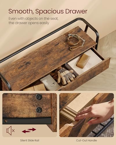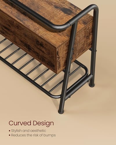 VASAGLE - فاساجيل مقعد تخزين الاحذية مع مقعد، مقعد احذية مع درج منظم، نمط صناعي، اطار ستيل، يحمل ما يصل الى 600 باوند، للمدخل، غرفة المعيشة، غرفة النوم، بني ريفي واسود، ULSB151K01