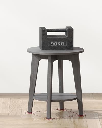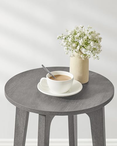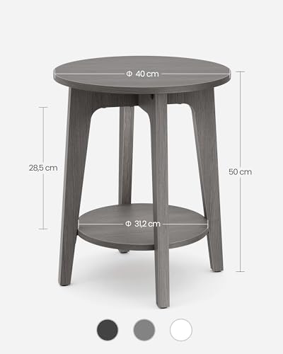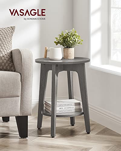 VASAGLE - فاساجيل طاولة جانبية مستديرة صغيرة لغرفة المعيشة بجانب السرير للمساحات الصغيرة مع رف سفلي طراز عصري رمادي دخاني LET283T68 خشب مُصنع