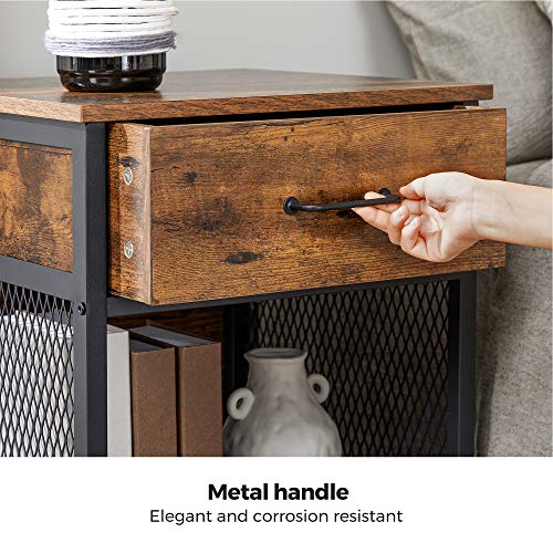 VASAGLE - طاولة جانبية وطاولة سرير بهيكل من الفولاذ بتصميم صناعي مع 1 درج وحجرة مفتوحة من فاساجيل فينسير، 45 × 45 × 55 سم، بني (راستيك براون)