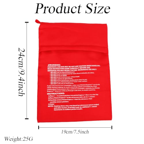 - يبلغ مقاس أكياس البطاطس الخاصة بنا حوالي 25.4 × 20.32 سم. يمكنك طهي 4 حبات بطاطس متوسطة الحجم في نفس الوقت، مما يوفر الوقت والمال.