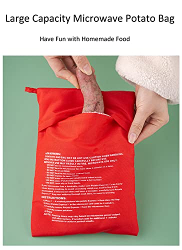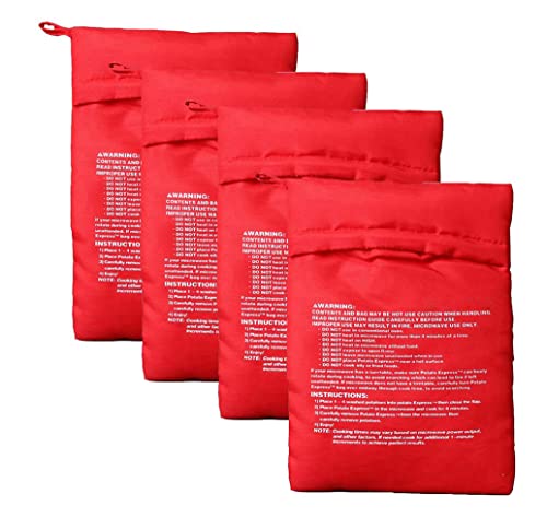 VASANA - أكياس البطاطس السريعة القابلة لإعادة الاستخدام في الميكروويف موفرة للوقت، أكياس قماشية لأي نوع من البطاطس، خبز السريع في 4 دقائق فقط، 4 قطع (أحمر)
