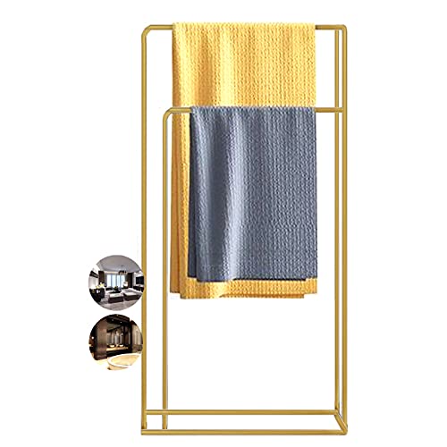 VASDEV - حامل فوط قائم بذاته، حامل فوط معدني قائم بذاته، قضيب فوط قائم على الارض شديد التحمل مقاوم للصدا / أبيض (ذهبي)