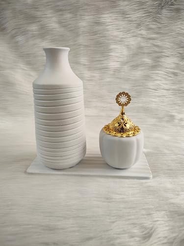 Generic - فازة ومبخرة ديكور انيق - تصميم عصري فاخر لتزيين المنزل والمجالس لون ابيض مط