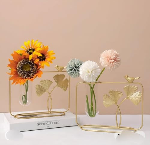 Generic - محطة توزيع الفازة - محطة توزيع زجاجية ومعدنية متعددة الاستخدامات مصممة لتهدئة بقايا النباتات وتفتيح المكاتب والرفوف وإضافة لمسة عصرية إلى أي مساحة (عبوة من قطعتين)