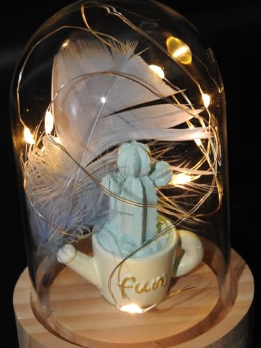 Generic - مزهرية على شكل صبار بلون ازرق مع سلسلة اضواء خيالية في قبة لعيد الحب وعيد الام وعيد الميلاد والذكرى السنوية والخطوبة والكريسماس - اضاءة LED مقاس 11×7.5 سم