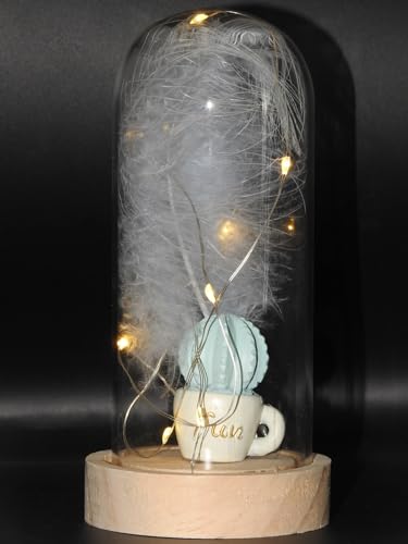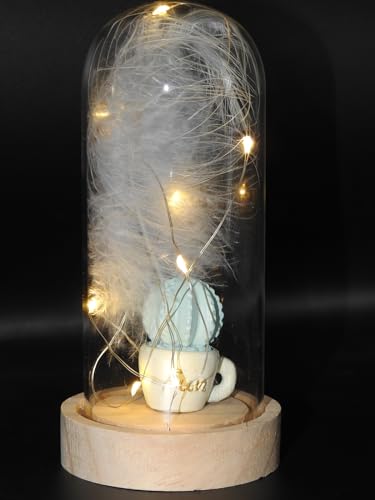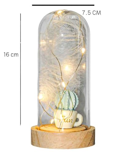 Generic - فازة على شكل صبار بريش مزودة بأضواء سترينج خيالية وأضواء ليد داخل قبة زجاجية، مناسبة لعيد الحب، عيد الأم، أعياد الميلاد، الذكرى السنوية، الخطوبة والكريسماس - مقاس 16 × 7.5 سم
