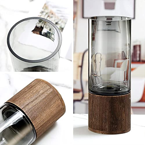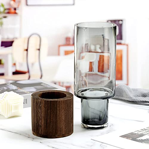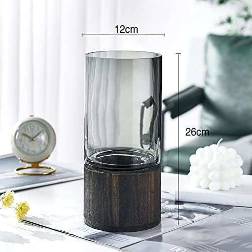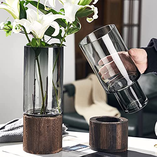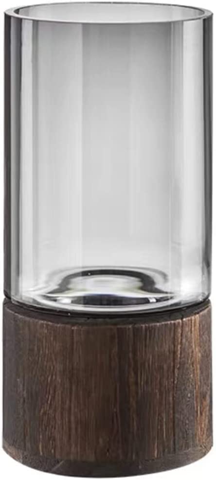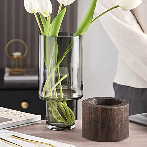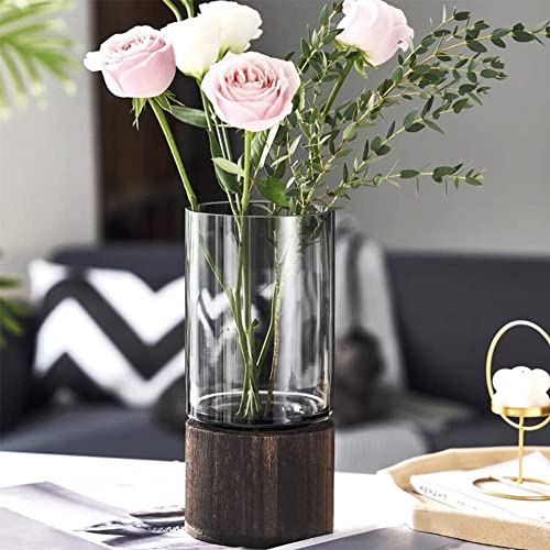Generic - فازة زجاجية بقاعدة خشبية مستوحاة من الطراز الإسكندنافي تناسب ديكور المنزل بتصميم كبير، لبتلات الورود، لمسة بسيطة وجذابة على أي مساحة داخلية، ارتفاعها 26 سم، شفافة (اسود، رمادي)