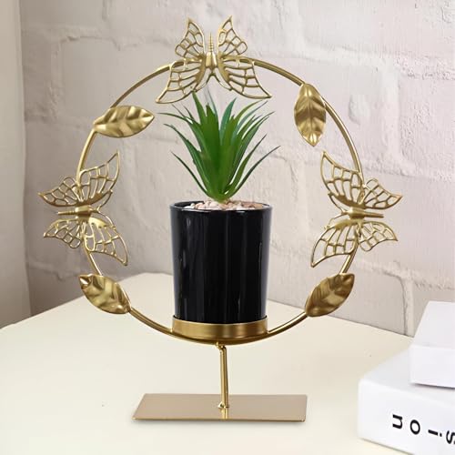 - يتميز حامل النباتات المعدني الذهبي الحديث هذا بتصميم فراشة فريد، مما يضيف لمسة أنيقة وغريبة إلى أي مساحة معيشة، مما يجعله عمليًا وزخرفيًا.