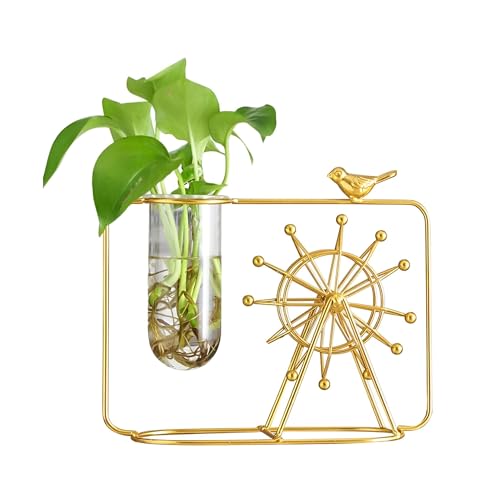 Generic - فازة بتصميم عجلة من الحديد على الطراز الاسكندنافي، مخصصة للنباتات المائية، مع حاوية شفافة للماء، بمثابة قطعة ديكور أنيقة لإضفاء لمسة جمالية على غرف المعيشة أو كقطعة مركزية مميزة للزهور، الأبعاد 23×7.5