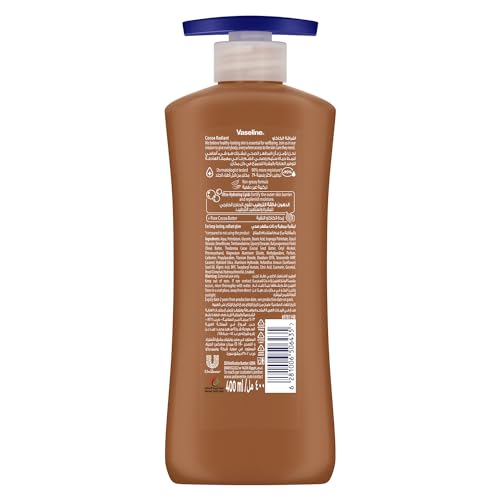 - لوشن الجسم بالكاكاو من فازلين مصنوع من زبدة الكاكاو النقية، والمعروفة بمنح البشرة إشراقة طبيعية.