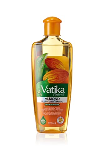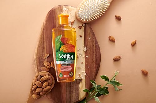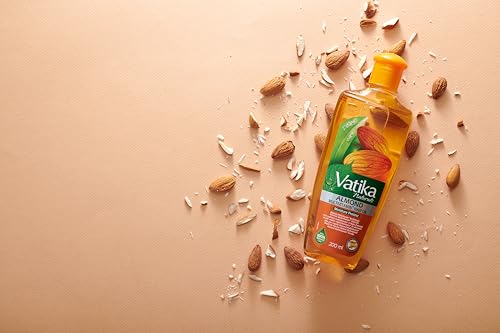 Vatika - زيت شعر غني باللوز من فاتيكا ناتشورالز، مستخلص طبيعي من جوز الهند والسمسم، يعزز الشعر الناعم واللامع، ويعالج الشعر الجاف والمجعد، قد يختلف التغليف، 180 مل
