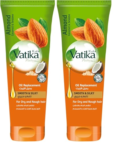 Vatika - بديل زيت ناعم وحريري ناتشورالز تركيبة غير لاصقة وغير دهنية من مستخلص طبيعي من اللوز وجوز الهند والسمسم لترطيب الشعر الجاف والخشن من فاتيكا، سعة 200 مل، عبوة من قطعتين