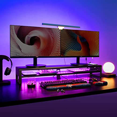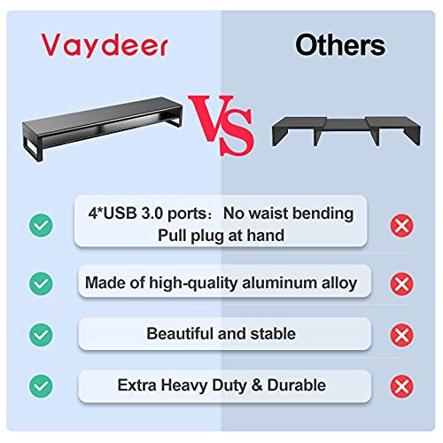 VAYDEER - حامل شاشة مزدوج من VAYDEER من طبقتين قوي ومتين من الألومنيوم مع 4 منافذ USB 3.0 Hub مناسبة للكمبيوتر وشاشات الكمبيوتر والكمبيوتر المحمول والتلفزيون ومنظم مكتب معدني للطابعة أسود