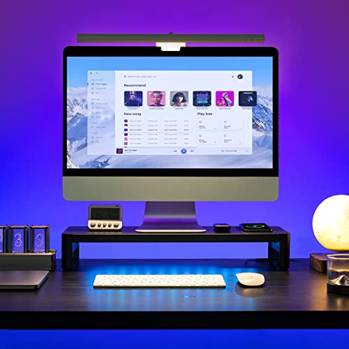 - 【منظم مكتب】بفضل التصميم المرتفع، يوفر حامل الشاشة هذا مساحة تخزين إضافية على مكتبك. يمكنك وضع الكيبورد والماوس أو الأشياء الأخرى أسفل حامل الشاشة لتنظيم سطح المكتب الخاص بك بأناقة. ملاحظة: لكي تعمل وظيفة الشحن اللاسلكي بشكل طبيعي، يرجى التأكد من عدم وجود قطعة معدنية على حافظة موبايلك، أو خلع حافظة الهاتف أثناء الشحن.