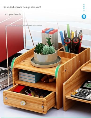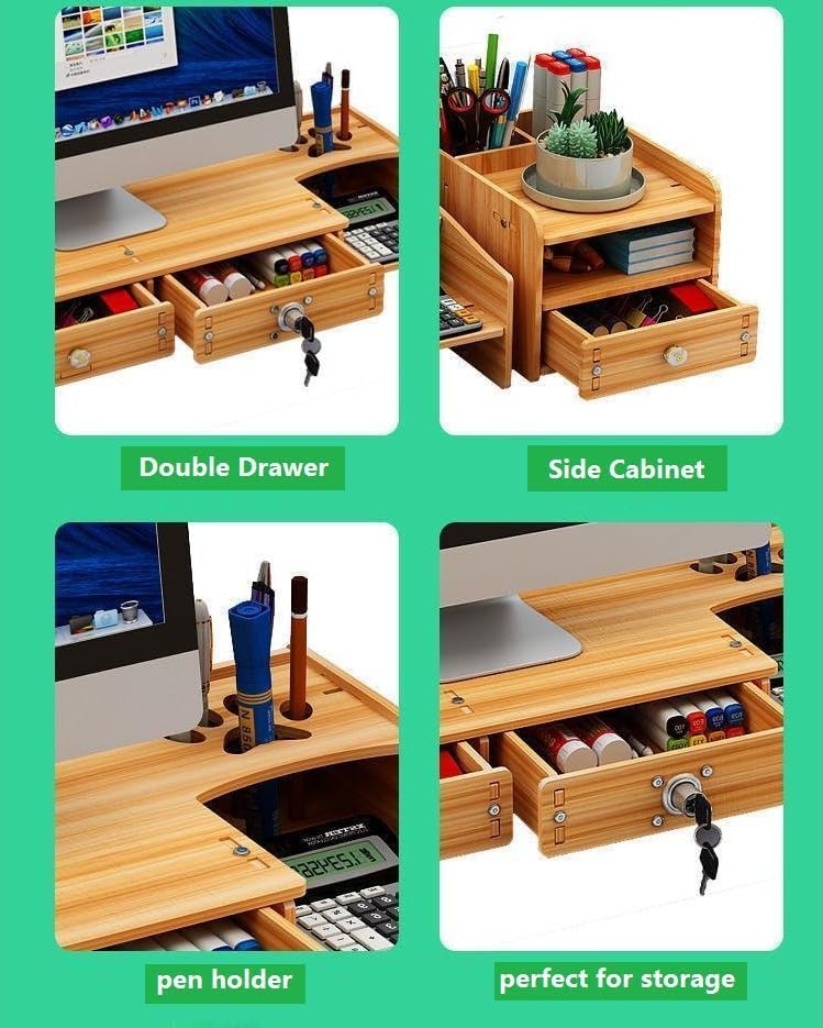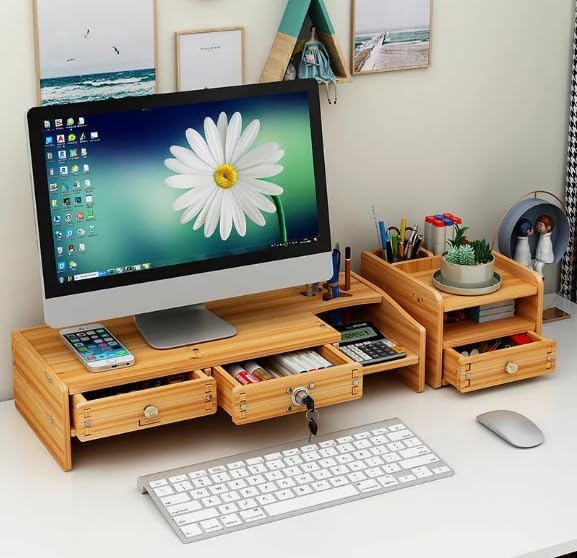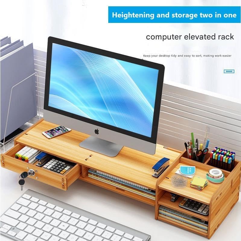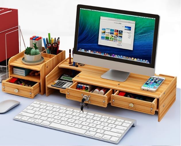 VBM - VBM حامل شاشة كمبيوتر محمول قابل للطي مع درج خشبي موفر للمساحة، حامل قلم رصاص، حامل شاشة قابل للطي للمكتب والمنزل