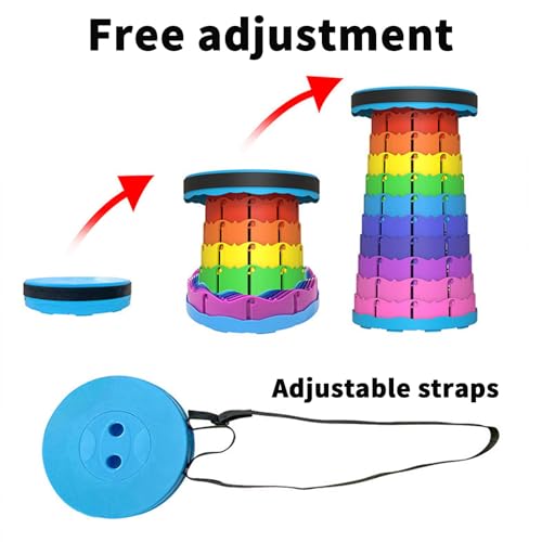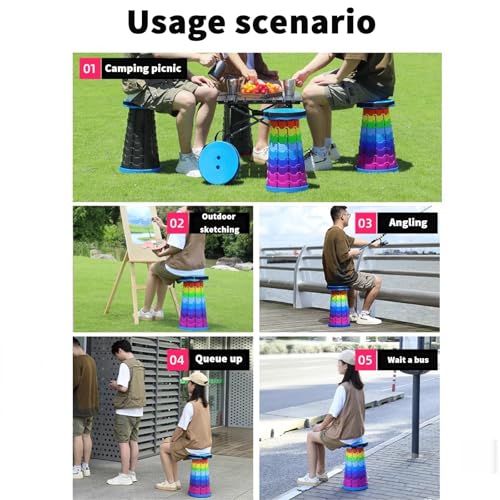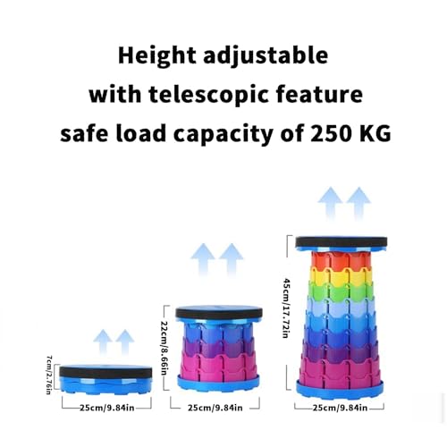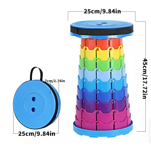 Vbvbip - مقعد دائري قابل للطي بالوان قوس قزح من في بي في بي بي - كرسي تخييم محمول / قابل للطي بسهولة للاستخدام في الهواء الطلق والنزهات والشاطئ والسفر والمشي لمسافات طويلة - تصميم متين وصغير الحجم