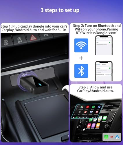 - 【سهل الاستخدام والتركيب】 1. وفقًا لنوع منفذ السيارة لاختيار كابل USB-A أو USB-C المتضمن في العبوة لتوصيله بسيارتك. 2. قم بإقران دبليو ال اف ال وبلوتوث مع بلوتوث المحول اللاسلكي. 3. السماح باستخدام كاربلاي اللاسلكي/اندرويد اوتو. بعد الإعداد الأول، سيقوم المحول الخاص بنا بتنشيط اتصال كاربلاي اللاسلكي تلقائيًا في كل مرة تبدأ فيها السيارة، مما يضمن حصولك على تجربة سلسة في كل مرة.