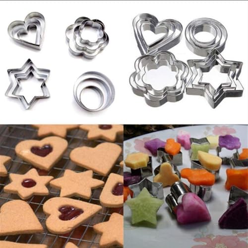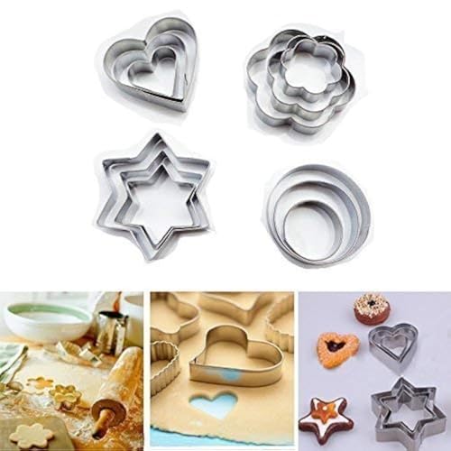 VDNSI - 12 قالب تقطيع من الستانلس ستيل لعمل المخبوزات والبسكويت والمعجنات والكيك والمافن باشكال وردة ودائرة وقلب ونجمة من فيدينسي (فضي)