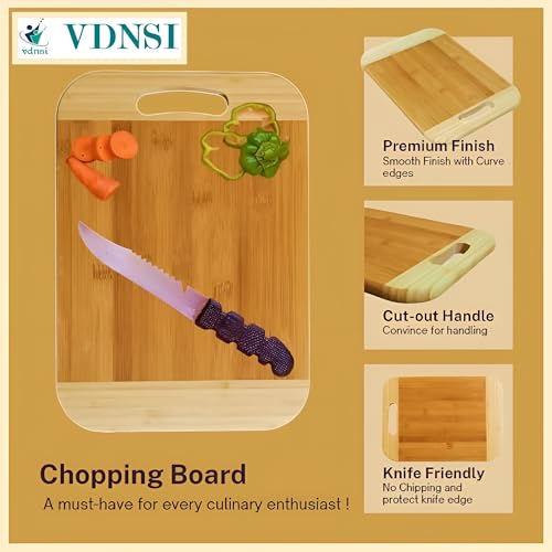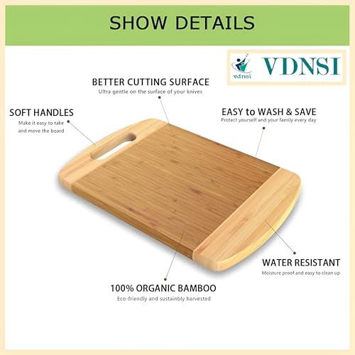 VDNSI - لوح تقطيع خشبي للمطبخ، لوح تقطيع خشبي سميك من خشب الخيزران، لوح تقطيع للخضروات خالي من مادة بيسفينول أ، لوح تقطيع سميك للغاية بزاوية دائرية مع مقبض (لوح تقطيع من الخيزران، مقاس 26 × 36)