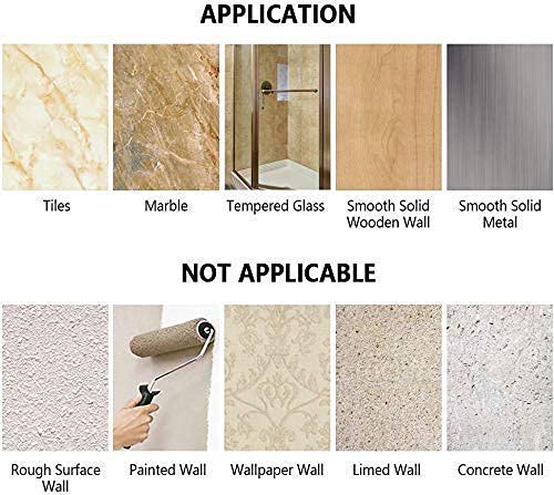 - سهل التركيب: تصميم لاصق شفاف لا يترك علامات، سهل التركيب، لاصق فقط على أي سطح أملس، مثل البلاط والزجاج والرخام. يرجى ملاحظة أنها "لا تناسب الجدران المطلية.