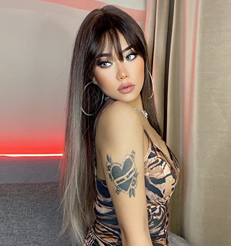 - شعر مستعار اشقر طويل، شعر مستعار صناعي مفرود بلون بني داكن متدرج مع غرة للنساء، شعر مستعار اشقر اشقر متدرج بلون بني بلاتيني للنساء، شعر مستعار اشقر ثلجي، شعر مستعار طويل بني