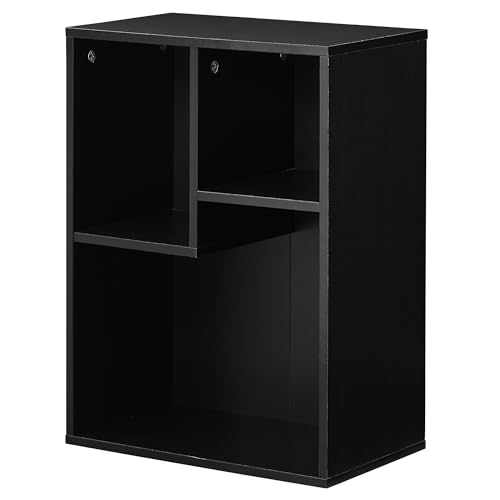 VECELO - رف كتب صغير من طبقتين من فيسيلو، مكتبة عصرية مفتوحة من 3 مكعبات مع أرفف بارتفاع يصل إلى 32 سم، عرض قائم على الأرض بسعة تحميل عالية، منظم تخزين مكعب، أسود عتيق