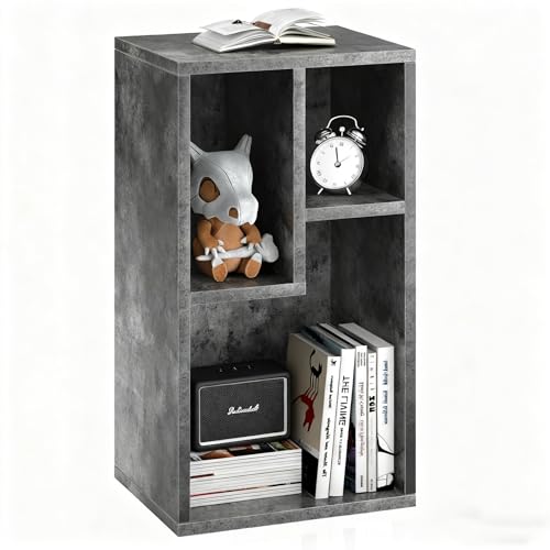 VECELO - فيسيلو خزانة كتب صغيرة من 3 مكعبات، خزانة كتب قائمة على الارض من طبقتين، منظم تخزين بارتفاعات مختلفة، ارفف عرض لمعظم الكتب، متوفرة افقيا، مناسبة للمكتب المنزلي، رمادي