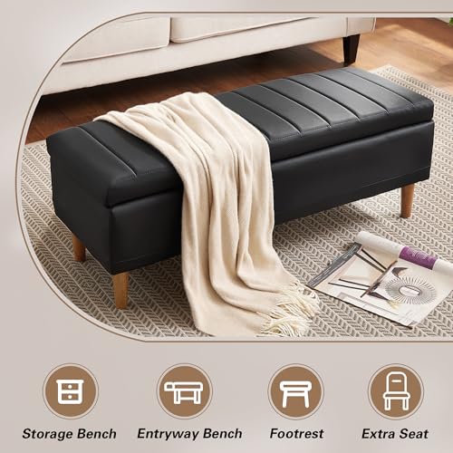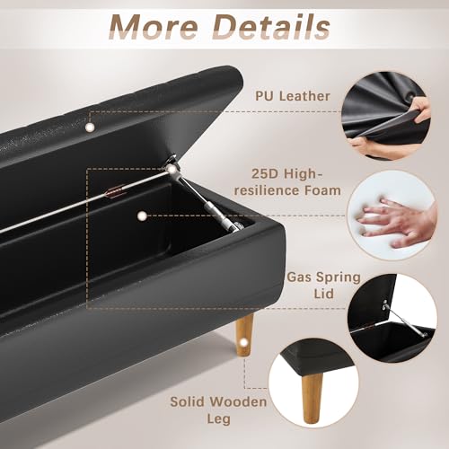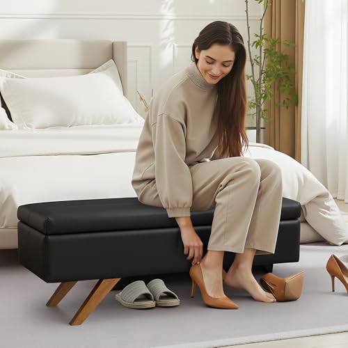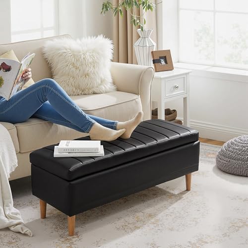 VECELO - كرسي تخزين من جلد البولي يوريثين الناعم، كرسي تخزين عصري بسطح منجد وسهل التنظيف، مثالي للمدخل وغرفة المعيشة وغرفة النوم من فيسيلو، مقاس 1.10 م، بلون أسود