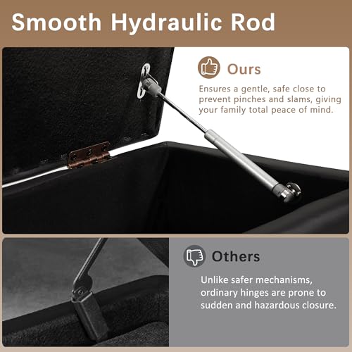 - ️【وداعًا للضوضاء】مع وسادات قدم مضادة للضوضاء وقضبان هيدروليكية ناعمة، كرسي التخزين الخاص بنا لا يصدر صوت احتكاك ويحمي أرضياتك. يحقق القضيب الهيدروليكي حركة مستمرة وسلسة مع تجنب الضوضاء عند الفتح والإغلاق، مما يقضي على خطر حوادث الإغلاق المفاجئة.