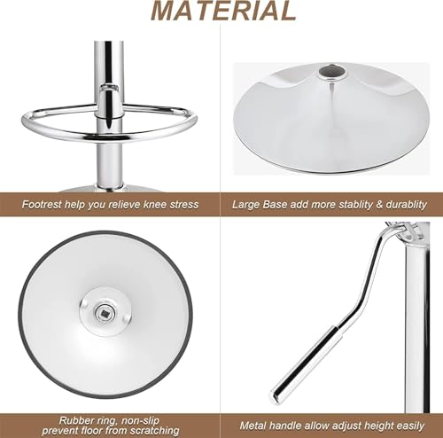 - 【مضاد للانزلاق ومقاوم للخدش】يأتي مع قاعدة دائرية من الستيل والكروم، ومقاعد بار قابلة للتعديل بها حلقة مطاطية لمنع الأرضية من الخدش وكذلك منع الضوضاء المثيرة للاشمئزاز عند الحركة. اشعر بالثقة عند استخدامها على أسطح الأرضيات المختلفة، بما في ذلك الخشب الصلب والبلاط والسجاد.