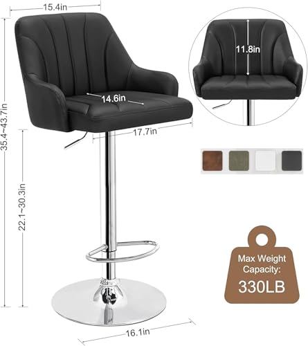 VECELO - فيسيلو مجموعة مقاعد بار من قطعتين، كراسي بار قابلة للتعديل، كراسي بارتفاع المنضدة مع ظهر وذراع، مقاعد جزيرة المطبخ، مقاعد دوارة من جلد البولي يوريثين، نمط عصري، اسود من البولي يوريثين