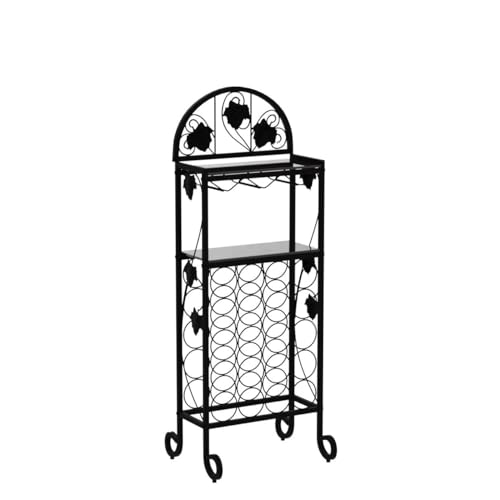 - [رف زجاجات نبيذ معدني أسود]. هيكل معدني بلمسة نهائية مطلية بمسحوق أسود مع سطحين زجاجيين باللون الأسود السطح مثالي لصب المشروبات وأطباق المقبلات وملحقات النبيذ وحمل زجاجة مفتوحة.