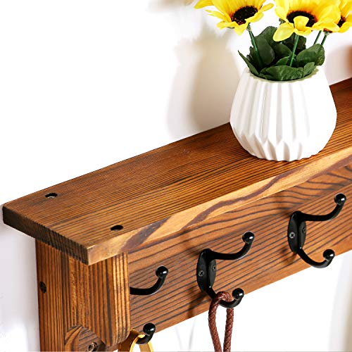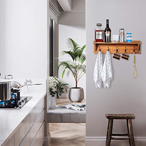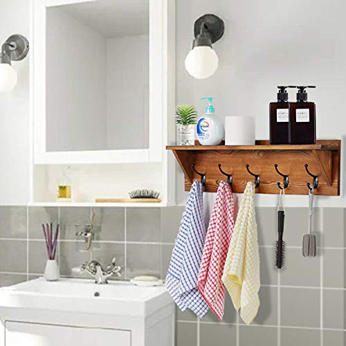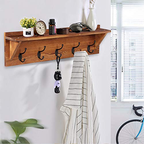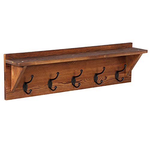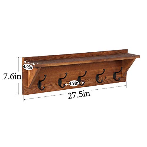 VECELO - رف خشبي يثبت على الحائط مقاس 68.58 سم بلون بني من فيسيلو، رف مع 5 خطافات معدنية مضادة للصدأ للمعاطف والقبعات للمدخل والمطبخ والحمام