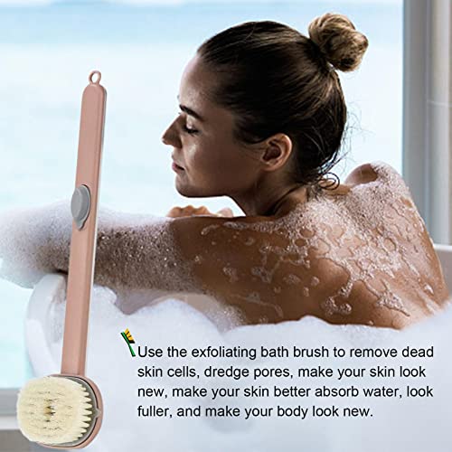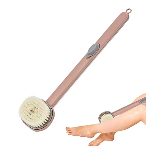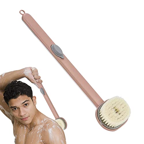 - √ تصميم جل الحمام للتخزين: يسمح لك المقبض الطويل لفرشاة الاستحمام الخلفية بصب جل الاستحمام في المقبض، والضغط على الزر والبدء في تنظيف بشرتك.