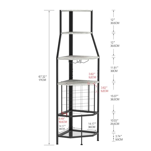 VEDECASA - فيديكاسا رف مشروبات زاوية مع حامل زجاجي وارفف تخزين قائم بذاته من 5 طبقات لغرفة المعيشة والبار وغرفة الطعام والمطبخ والحانات حديد خشبي مصمم هندسيًا رمادي