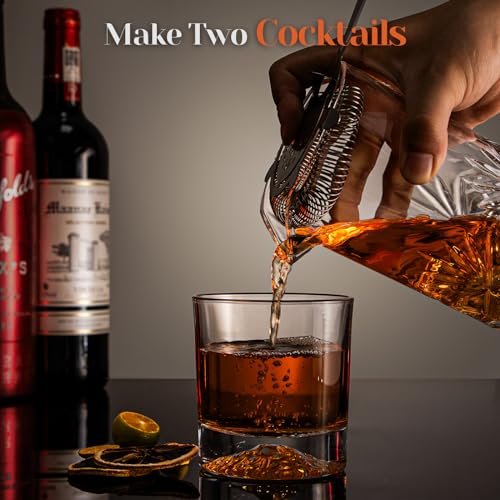 veecom - كوب خلط كوكتيل من الزجاج الكريستالي فيكوم سعة 18 اونصة، مجموعة من 5 قطع من الزجاج القديم مع مصفاة وخلط وملعقة وجيجر وخلاط كوكتيل (5 قطع زجاج خلط)