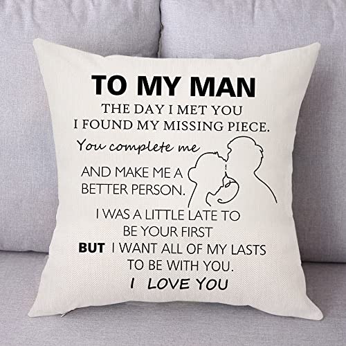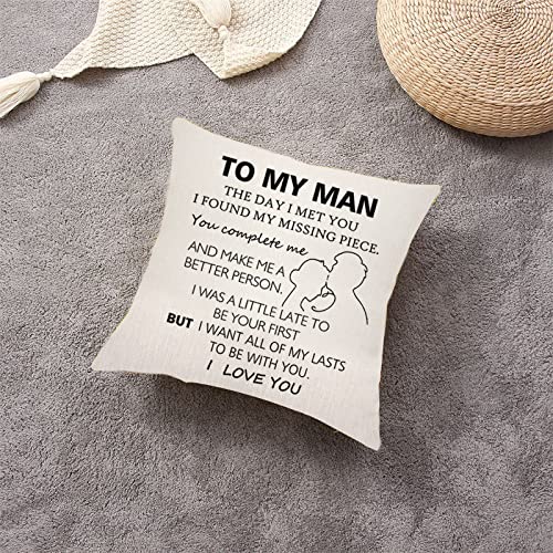 VEEMIZO - اغطية وسائد لعيد الحب، هدايا للصديق والزوج من الصديقة والزوجة وعيد الميلاد والزفاف والذكرى السنوية لعيد الميلاد، اغطية وسائد زينة بعبارة «My Man I Love You» مقاس 45 × 45 سم