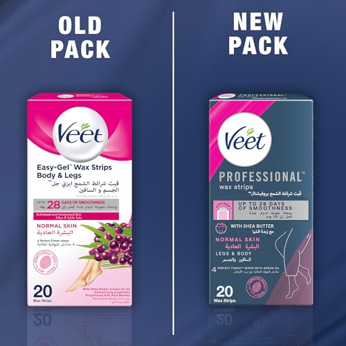 Veet - شرائح شمع ايزي-جيل لإزالة شعر الجسم والساقين للبشرة العادية بخلاصة زبدة الشيا المرطبة ورائحة توت الآساي من فيت، 20 شريحة