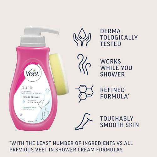 Veet - كريم لإزالة الشعر أثناء الاستحمام للبشرة الحساسة من فيت، عبوة 400 مل