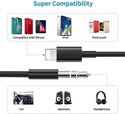Veetone - كابل صوت ايه يو اكس لستيريو السيارة من لايتنينج الى 3.5 ملم لايفون 12 - 11 - XS - XR - X 8 7 6 5 والايباد والاي بود مكبر الصوت - ستيريو المنزل - سماعات الرأس يدعم نظام iOS 14 معتمد ابل لون اسود