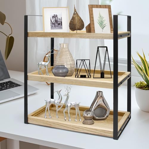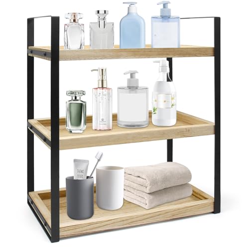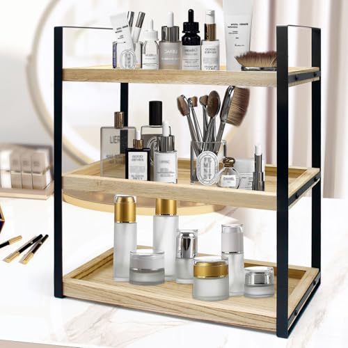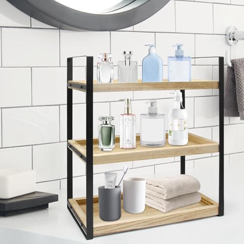 Veftsvy - رف قائم للمطبخ من فيفتسفي، منظم منضدة الحمام، تخزين سطح الطاولة من 3 طبقات، رف المكياج، علبة الحوض، حل تخزين بيرليوود للحمام ومستحضرات التجميل