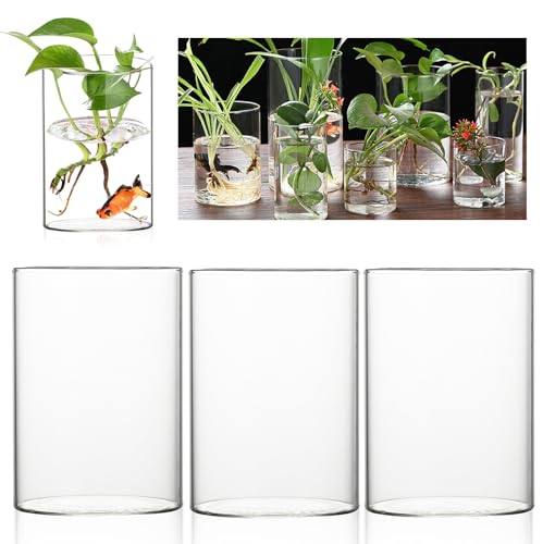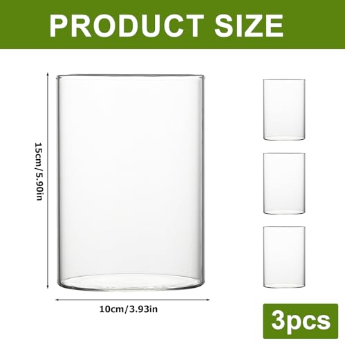 Vegena - مزهرية اسطوانية زجاجية مع قاعدة من فينجينا، عبوة من 3 قطع مقاس 10 × 15 سم، مزهرية اسطوانية من الزجاج الشفاف، مزهرية زجاجية اسطوانية حديثة، حامل شموع زجاجي، مجموعة مزهريات زهور للاوركيد والورود، 3 قطع