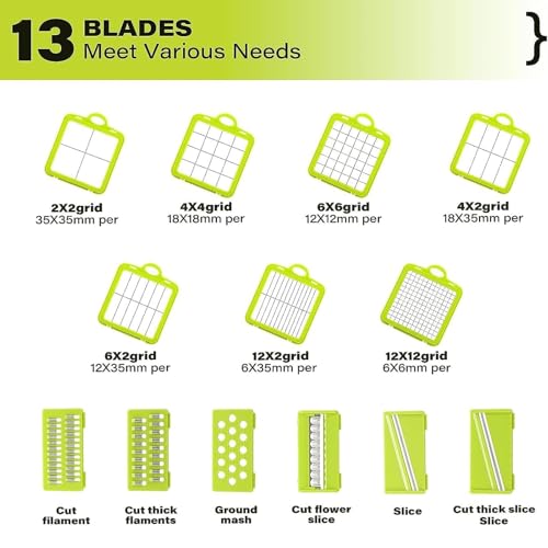 URSMILEKIT - قطاعة خضروات متعددة الوظائف 22 في 1، قطاعة بصل احترافية مع 13 شفرة، قطاعة طعام للمطبخ مع حاوية للطماطم والبطاطس والفواكه سهلة التنظيف والتخزين، 13 شفرة