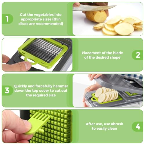 - 【وفر الوقت والجهد】 بفضل شفراتها الحادة للغاية والتشغيل السلس، تقلل قطاعة الخضروات هذه من وقت التحضير بشكل كبير، مما يجعل التقطيع والتشريح أسرع وأكثر سهولة. مثالية للأسر المزدحمة ومحضري الوجبات وأي شخص يسعى إلى تبسيط عملية الطهي مع تعزيز كفاءة المطبخ اليومية.