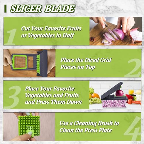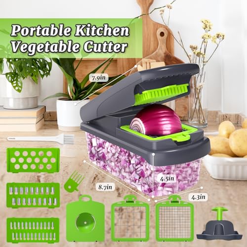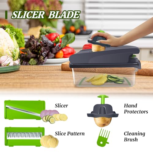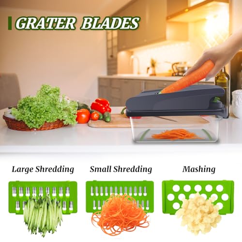 Jamestry - قطاعة خضروات متعددة الوظائف 14 في 1 مع 3 شفرات و5 شفرات لتقطيع البصل والجزر والطماطم والفواكه