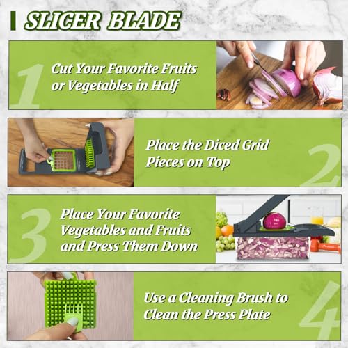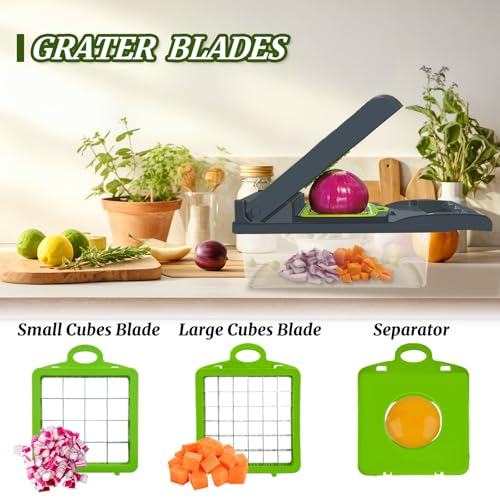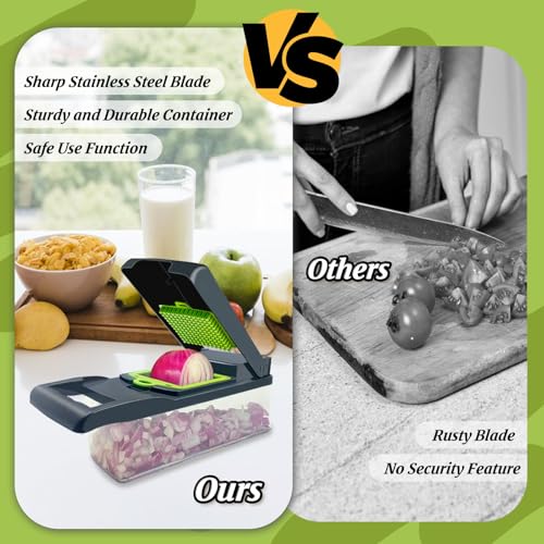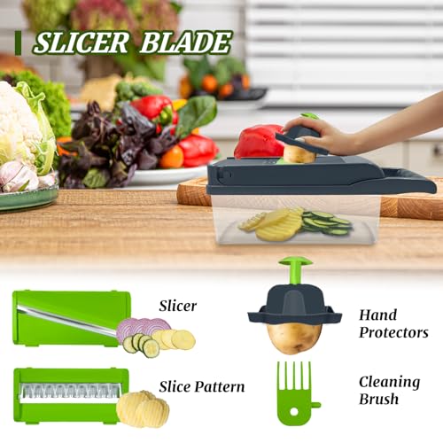 PAWPRO - قطاعة خضروات متعددة الوظائف 14 في 1 مع 3 شفرات و5 شفرات، قطاعة طعام لتقطيع البصل والجزر والطماطم والفواكه