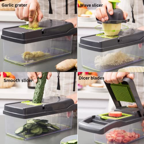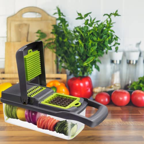 Generic - قطاعة خضروات، قطاعة بصل احترافية مع حاوية، قطاعة طعام متعددة الوظائف 12 في 1، قطاعة خضروات للمطبخ، قطاعة طعام متعددة الوظائف للمنزل