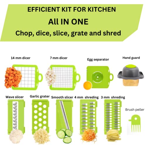 - جودة فائقة - أحدث مفرمة خضروات متعددة الوظائف وتقطيع شرائح أو نرد أو شريحة أو بشر! قطاعة الخضروات هذه هي أداة مطبخ عملية، توفر قطاعة الخضروات وظائف متعددة في أداة مطبخ واحدة متعددة الاستخدامات. قطاعة البصل مصنوعة من مواد عالية الجودة مثل شفرات الستانلس ستيل عالية الجودة ومواد آمنة غذائيًا. يمكن لمفرمة الخضروات تقطيع معظم أنواع الخضروات والفواكه.