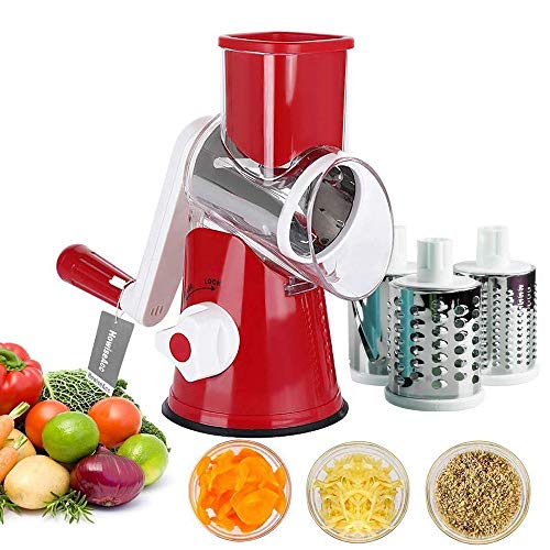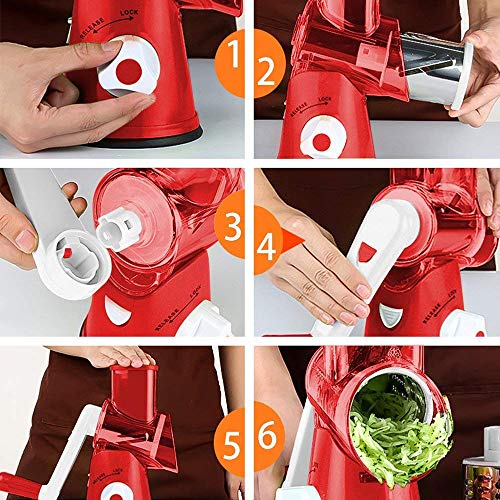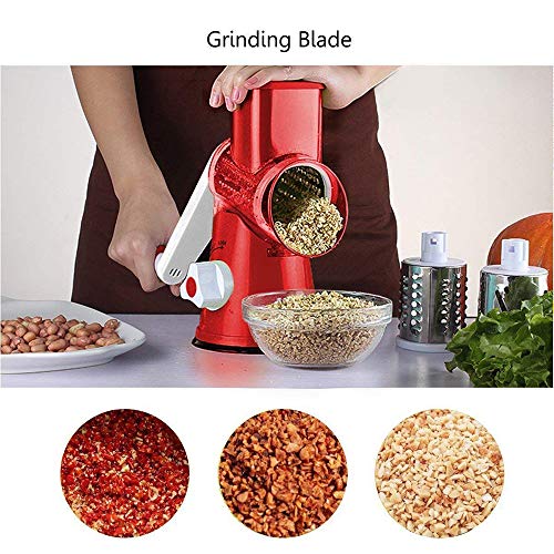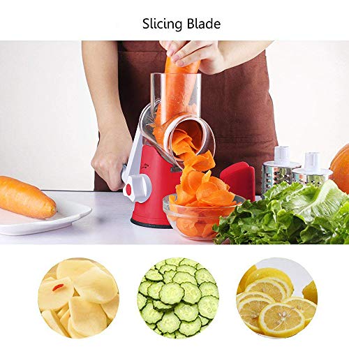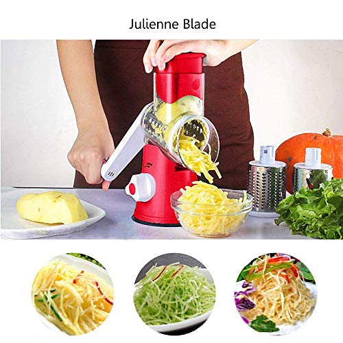 WYFXPP - قطاعة شرائح للفواكه والخضروات متعددة الوظائف بها 3 شفرات دوارة ستانلس ستيل للبشر والتقطيع لشرائح رفيعة ودائرية للفواكه والخضروات والجبنة، أحمر