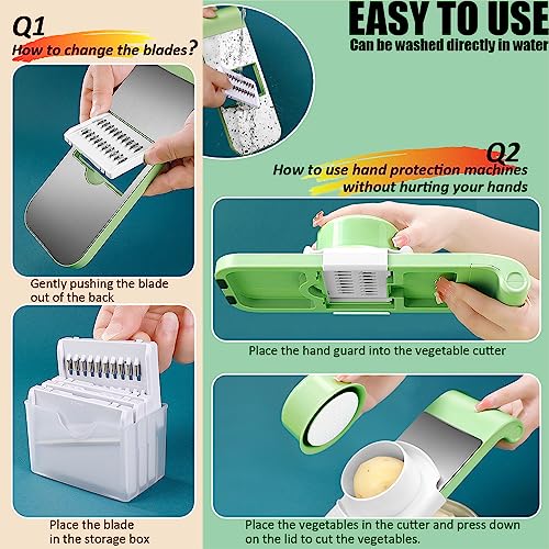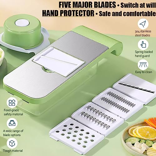 ODIWEN - قطاعة شرائح للخضراوات، قطاعة بطاطس، أداة متعددة الوظائف لتقطيع الخضراوات مزودة بعدد 5 إعدادات للشفرات ووعاء تجميع للشرائح السميكة والرقيقة، قطاعة خيار للفاكهة والثوم